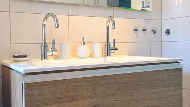 Wir haben uns im gemütlichen neu gestalteten Bad für eine optimale Nutzung des Raumes entschieden. Sie haben hier eine Dusch/Badewannenkombi und ein Doppelwaschbecken, sodass man auch mal schnell zwei Kinder in der Badewanne abduschen kann. Darüber hinaus ist in der Badewanne eine Rainshower installiert. Der Anzahl an Gästen entsprechend legen wir Ihnen natürlich auch Handtücher zum Hausgebrauch bereit. (Hinweis: Handtücher für den Strand finden Sie im EG in der Kommode im Flur).