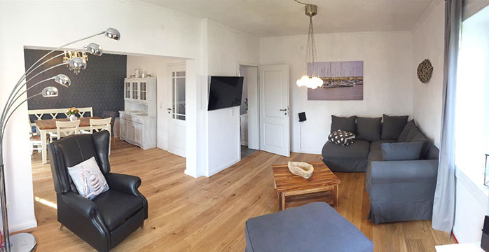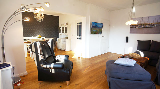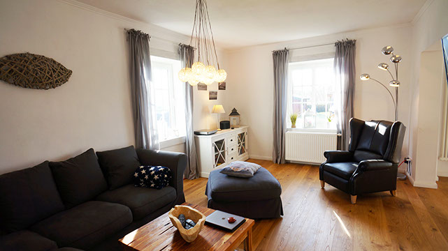 Sollten Sie gern mal einen Tag drinnen verbringen, können Sie sich auf der geräumigen Eck-Couch im Wohnzimmer einkuscheln. Der Flachbildfernseher kann sowohl das übliche Fernsehprogramm als auch BluRays und DVDs abspielen. Wir stellen Ihnen eine kleine Auswahl an Büchern, BluRays, DVDs, CDs (für die Musikanlage) und Gesellschaftsspiele für Groß und Klein zur Verfügung.