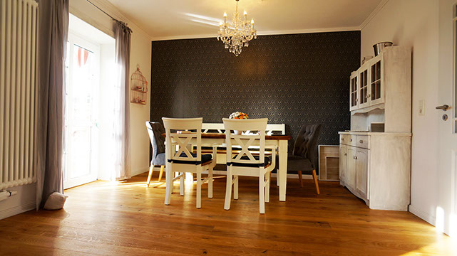In beiden Räumen haben wir geölte Eichenholzdielen verlegt, um den alten Flair des Hauses wieder aufleben zu lassen.